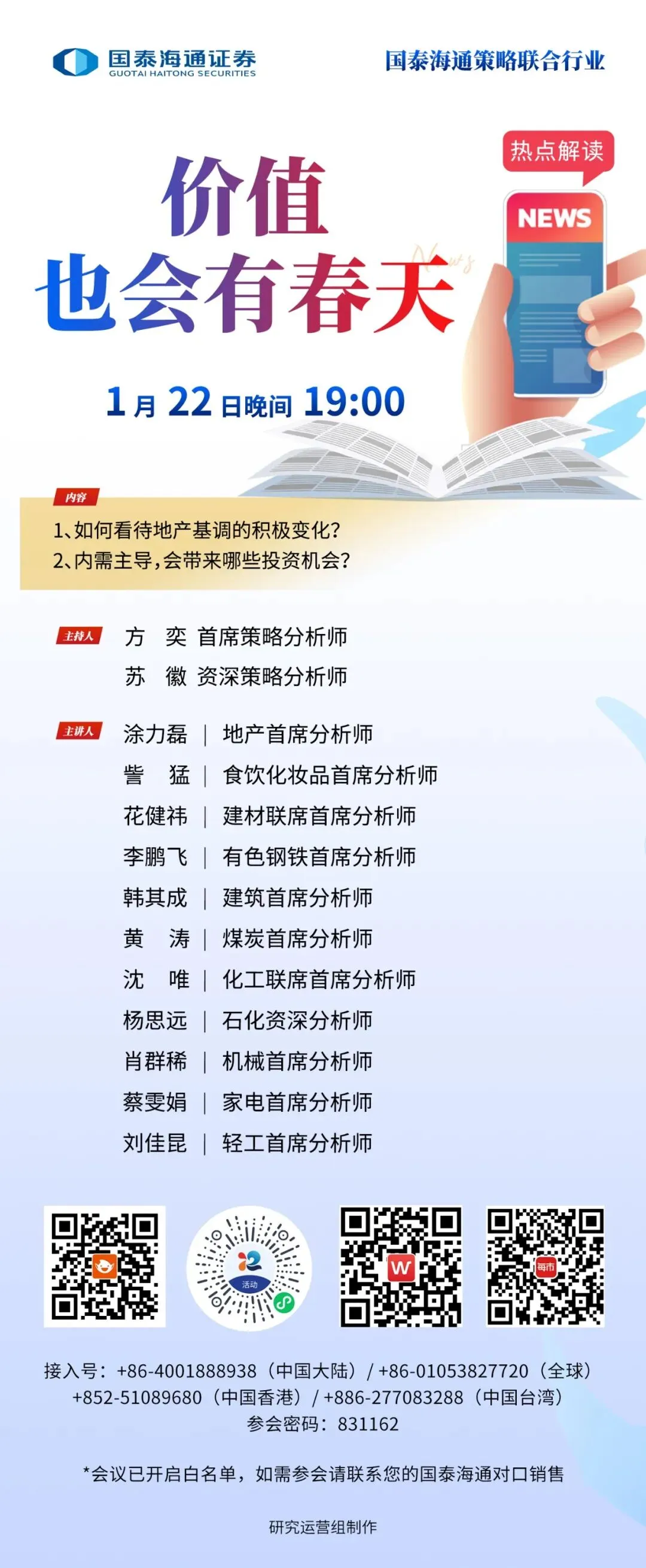 温馨提示:会议启用白名单,如需参会外呼请提前联系您的国泰海通对口销售。