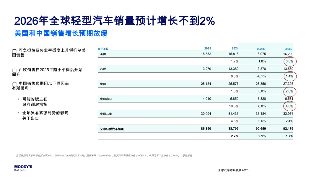 >穆迪:2026年全球汽车行业市场更新报告(英译中)