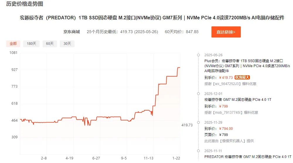 前两年百元级1TB SSD的快乐,如今彻底成了回忆。2025年下半年起,SSD价格持续飙升,部分型号涨幅超130%,旗舰款千元难寻。刚需党该不该入手?拆机OEM盘能不能捡漏?本文带你避坑省钱,快速选对款式。一、涨价真相:供需双杀,涨势难止