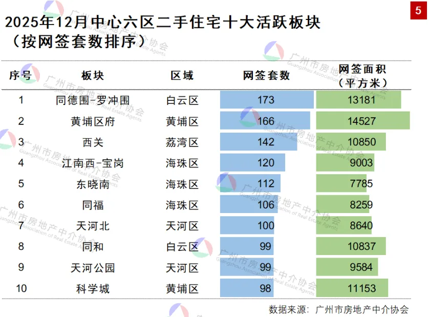 先看成交量,去年12月,科学城出现在了中心六区二手住宅十大活跃板块中,环比增长24.05%。