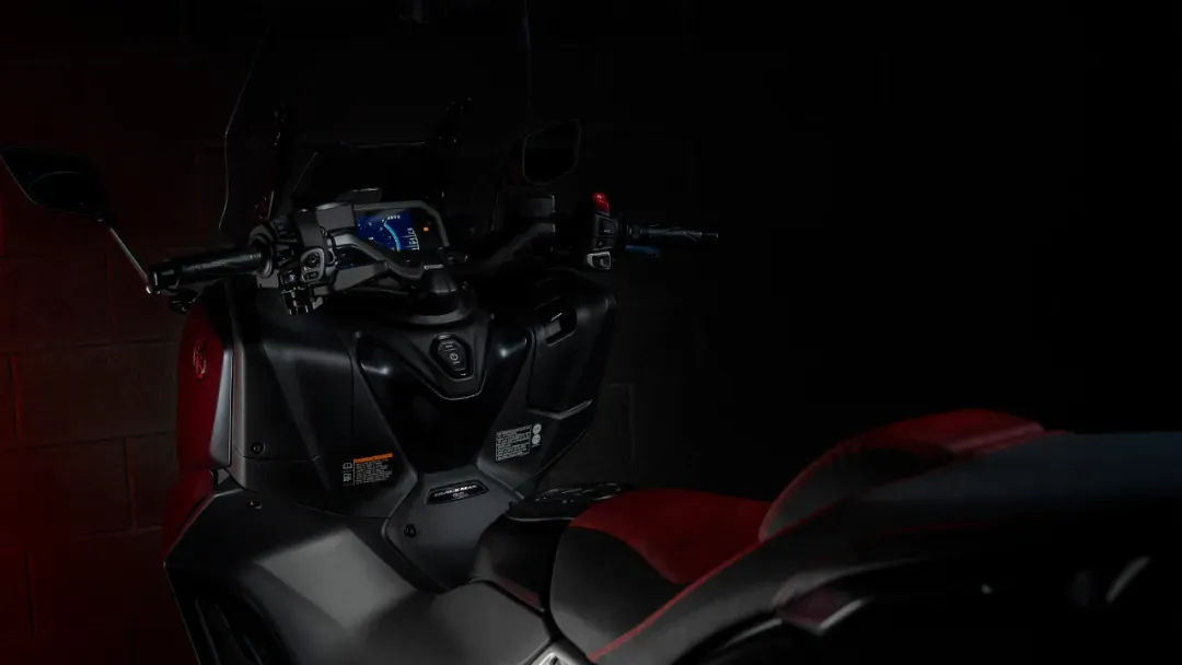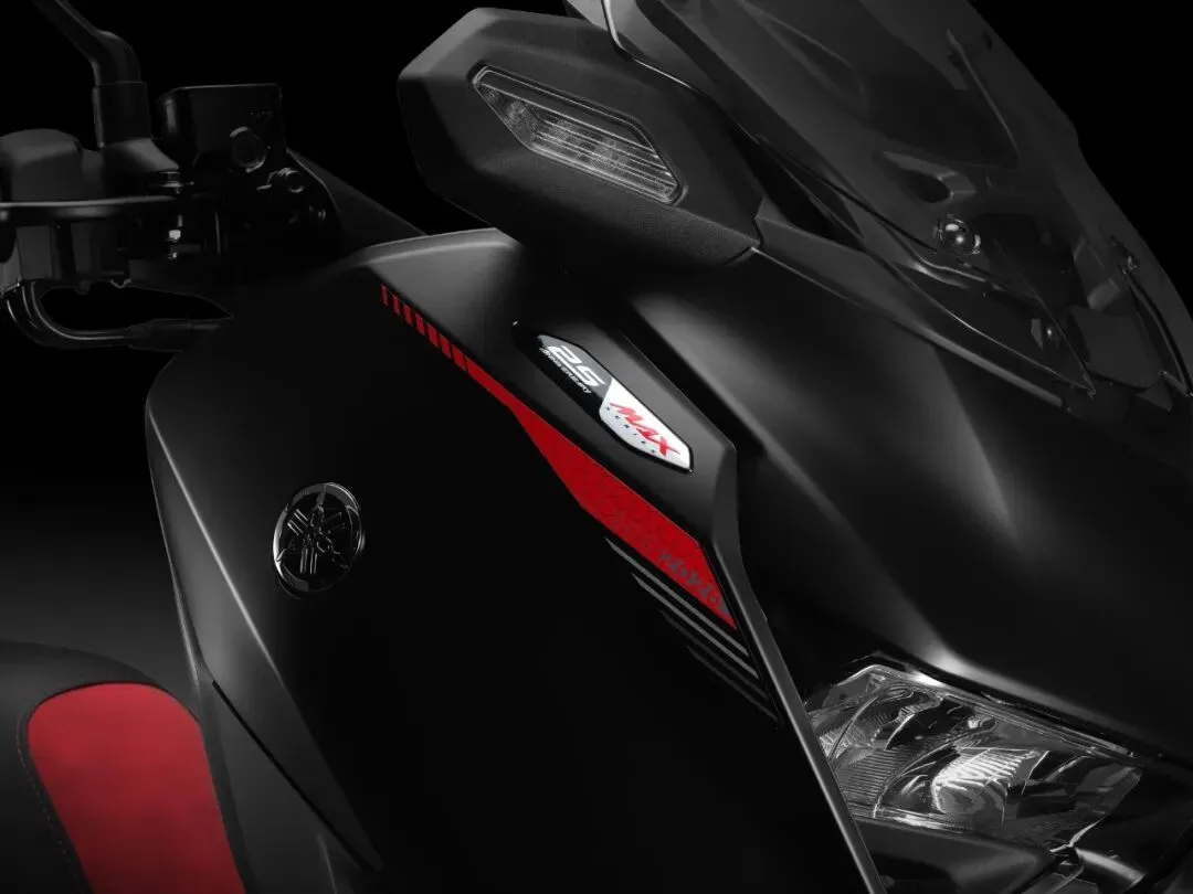 外观设计方面,雅马哈25周年TMAX 560 TECH MAX以2006年TMAX blackmax为灵感,采用独特的红色细节装饰,让这台熟悉的旗舰踏板再次焕发新意。