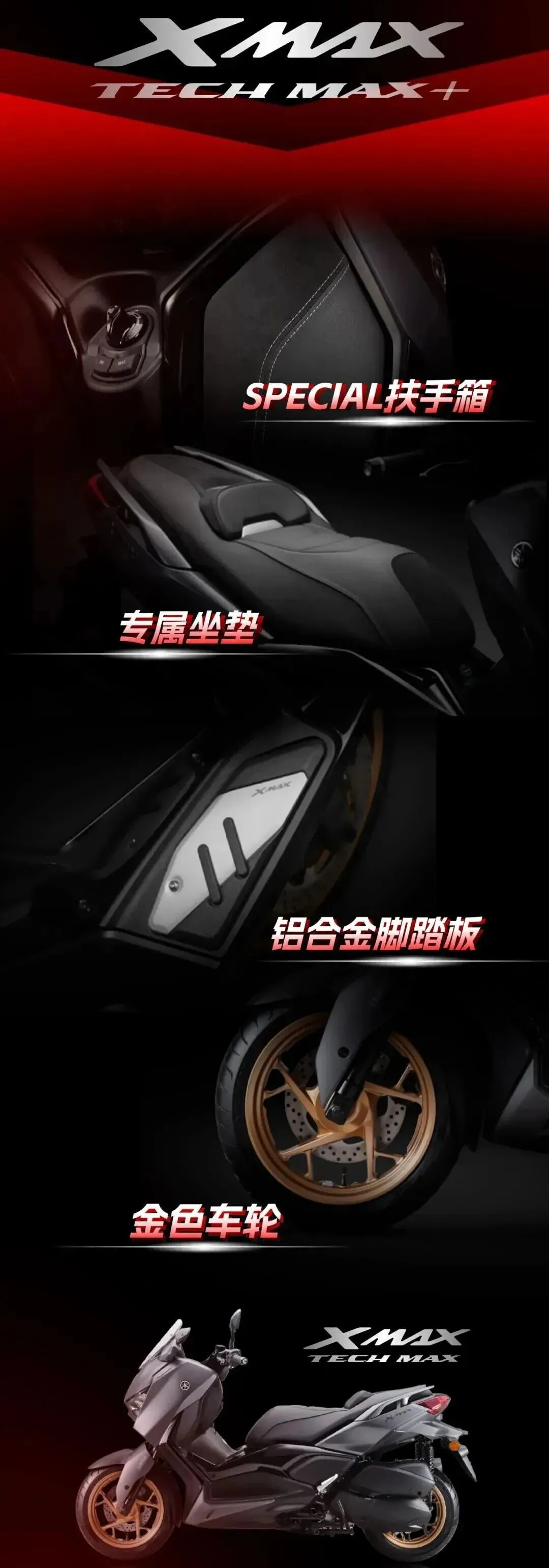 除了旗舰跑羊车型之外,一直被国内各大厂商模仿的XMAX TECH MAX也迎来了25周年车型,而且还有一个细节感拉满、加热坐垫和手持的XMAX TECH MAX+版本。
