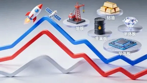 板块方面,商业航天概念爆发,可持续有待观察。油气板块延续强势,而贵金属板块走弱,半导体、算力产业链高开低走。
