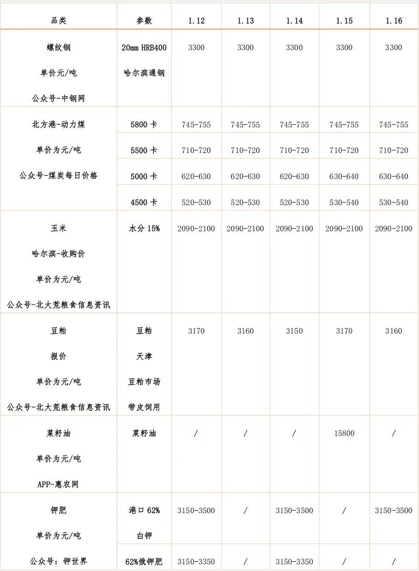 煤炭方面,上周国内煤炭现货价格呈“动力煤先稳后弱、焦煤先涨后调、整体分化”态势,动力煤方面秦港Q5500报697元/吨周环比涨1元、环渤海指数686元/吨微涨0.15%;成因上,前半周榆林产能核减与印尼出口配额缩减引发供给收缩预期、“三九”寒潮初现提振供暖需求推动价格坚挺,后半周东南沿海偏暖导致电厂日耗环比下行、进口煤价格优势扩大及钢厂补库谨慎压制涨幅,优质低硫主焦煤因供应偏紧竞拍活跃,普通煤种则价格松动。市场机会方面,短期动力煤因港口贸易商挺价意愿强、寒潮将再次来袭,价格下行空间有限,可关注黑龙江等北方地区供暖补库驱动的局部上涨机会。