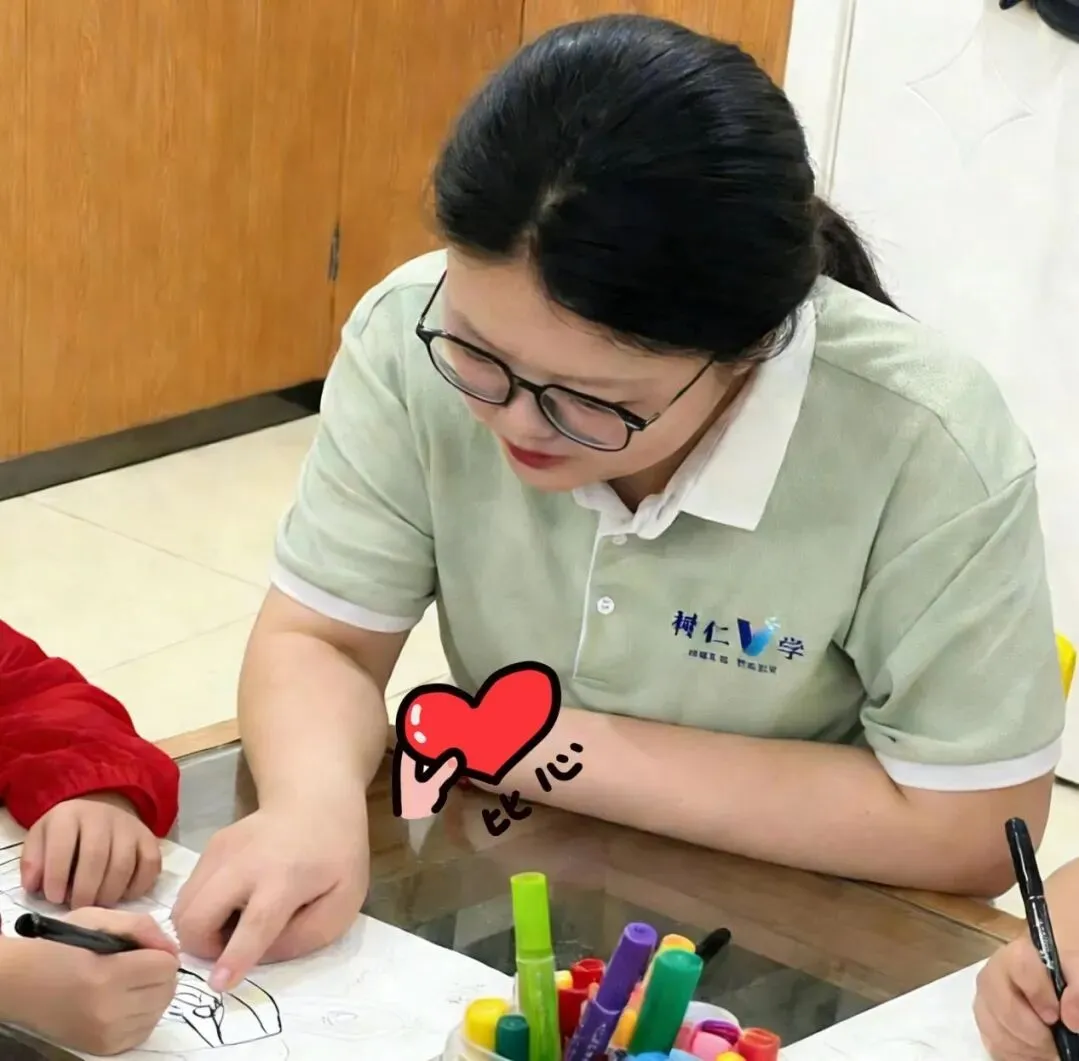 故事始于一个格外安静的孩子。去年暑假,小宥初到树仁时,像一颗孤独的小星星,小小的世界被一层透明的隔膜包裹着。他的目光总聚焦在空气中某个虚无的点,对周遭的喧闹置若罔闻;集体活动里,又像一块倔强的石头,执拗地沉浸在自我的静默中。在很多场景里,这类孩子常被仓促贴上“问题儿童”的标签,被大人们带着焦虑推入各种矫正训练。但在树仁,迎接小宥的,是绘画班许老师温暖而坚定的怀抱。