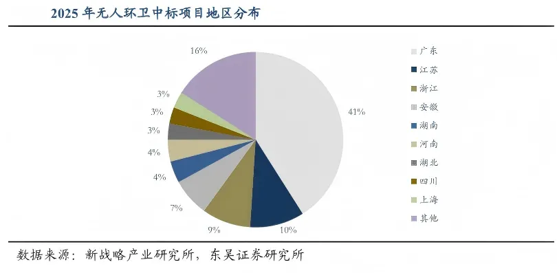 近期,环卫行业正迎来一场由科技驱动的深刻变革。无人化与电动化两大趋势并行,不仅重塑着传统环卫作业模式,更开启了智慧环卫的全新篇章。政策层面的支持为行业发展注入了强劲动力。2025 年 11 月,国务院办公厅印发相关实施意见,首次提出打造 “全空间无人体系”,拓展公共服务等无人体系应用场景。这一政策的出台,为无人驾驶环卫设备的市场化落地铺平了道路。多地也纷纷加码布局。深圳构建起从技术验证到场景落地的完整培育体系,广州计划 2026 年无人驾驶清扫设备投用量达到 1000 台,各地通过资金补贴、示范应用等方式,推动无人环卫加速走进现实。在项目落地层面,2025 年国内无人环卫设备采购和试点项目中标总金额超 126 亿元,同比增长超过 150%。广东以 41% 的项目数占比领跑全国,成为无人环卫推广的前沿阵地。各大企业也纷纷亮出硬核产品。盈峰环境的 “盈峰小蜜蜂” 无人清扫车,每小时清扫效率达 7150 平方米,可连续工作 3.5 小时;福龙马的 SD22 智慧车辆,已在杭州萧山、福建龙岩等地投入运营,逐步接管道路日常清扫工作。这些无人设备不仅作业高效,经济性也逐渐凸显。小吨位无人环卫设备在适宜场景下,1 台设备搭配 1 名工作人员,可替代 3-4 名环卫工人,在设备售价逐步下降后,最快第 2 年就能显现出成本优势。与此同时,环卫电动化进程也在加速推进。2025 年全年新能源环卫车销量达 16119 辆,同比增长 70.9%,渗透率提升至 21.11%。河南、湖南、河北等省份销量领跑全国,上海的新能源环卫车渗透率更是高达 69.5%,位居全国首位。随着技术的不断成熟与成本的持续下降,环卫无人化与电动化的融合发展,正为城市环境治理带来更高效、更绿色的解决方案。这场变革,不仅是科技赋能传统行业的生动实践,更预示着智慧环卫的广阔未来。