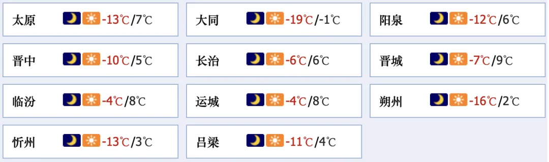 今日,全省晴天间多云。最高气温:北部及中南部山区-4~4℃,中南部其余地区4~9℃;最低气温:高寒地区-22℃左右,北部及中南部山区-20~-12℃,中南部其余地区-12~-2℃。
