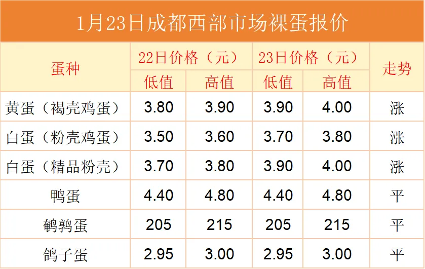 >1月23日成都蛋价