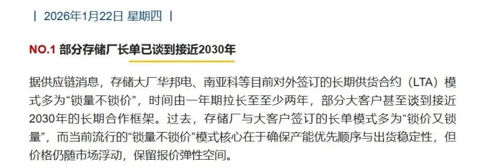 存储报价继续上涨,这个单边走势可能要持续到6月。看到报道说排单已经排到2030年,确实有点夸张