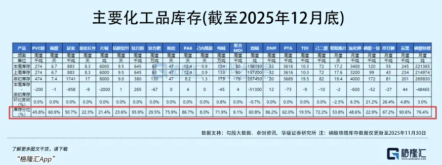 坚实的宏观数据印证了行业拐点的到来。 从2025年下半年开始,化学原料及化学制品制造业的固定资产投资增速转为负增长。这意味着持续数年的产能扩张高峰已经过去,供给压力将逐步缓解。与此同时,下游的纺织服装、家电等领域的市场需求正在温和复苏,产业链各环节的库存水平已降至近年低位。