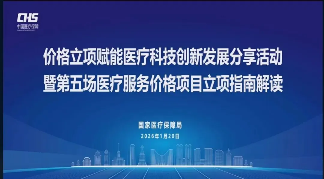 2026年1月20日,国家医保局在北京举办“价格立项赋能医疗科技创新发展分享活动暨第五场医疗服务价格项目立项指南解读”,来自有关部门、地方医保部门、医疗机构、高校协会、投资机构和医疗器械企业的近200名代表参加活动,20余家企业携带数十台医疗设备进行现场展示。国家医保局有关单位负责同志深入解读价格立项支持精准医疗、远程医疗等新场景规模化应用情况,解放军总医院张旭院士、陆军军医大学第一附属医院卞修武院士分别介绍手术机器人和远程手术、病理诊断前沿研究成果,企业代表介绍手术机器人、病理数智化诊断相关产品和服务,投资机构代表介绍医疗器械投资市场新动向。