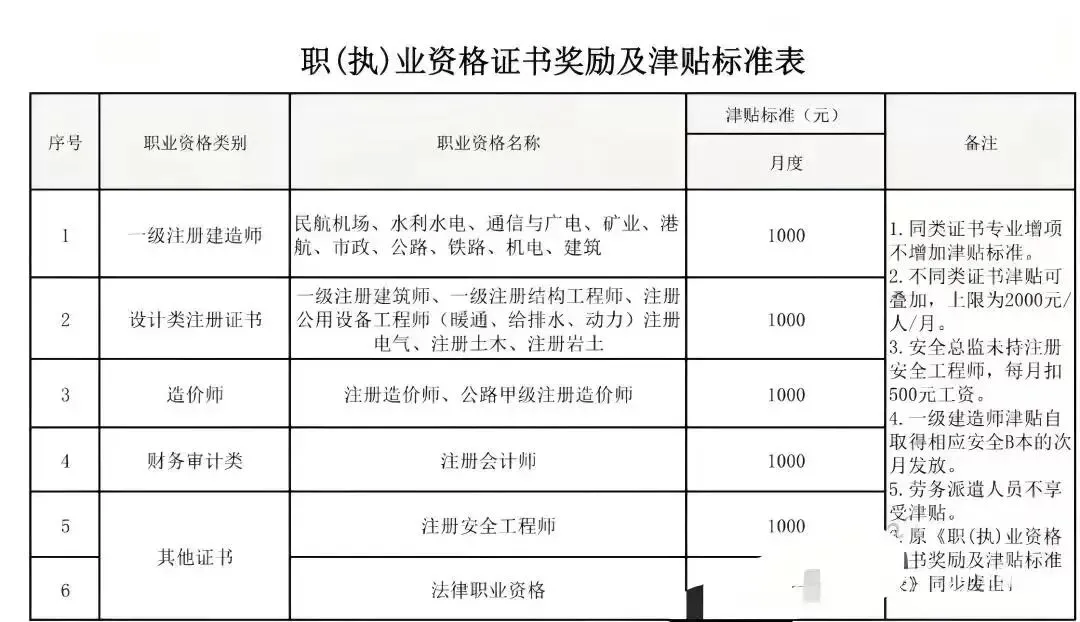 先是中建某局一份《职(执)业资格证书奖励及津贴标准表》在业内传开,各类注册证书月度津贴被统一拉到1000元,还设置了2000元/人/月的上限,连劳务派遣人员都直接被排除在津贴体系外。紧接着,广东、山东等多地建筑集团的降薪通知陆续流出:月薪5000元以上按85%发放、停发各类奖金、取消年终奖,甚至有企业直接降薪10%-15%。