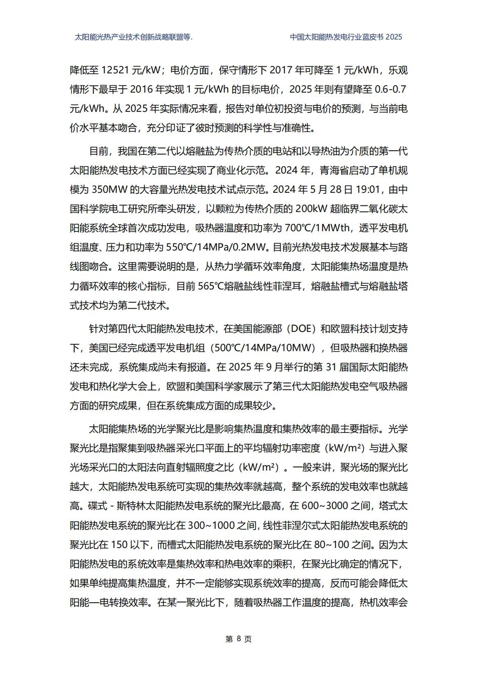 《中国太阳能热发电行业蓝皮书(2025)》由国家太阳能光热产业技术创新战略联盟与中国可再生能源学会太阳能热发电专业委员会联合编著发布,系统梳理了行业发展现状、技术突破与未来趋势,为推动光热发电规模化应用提供了权威参考。