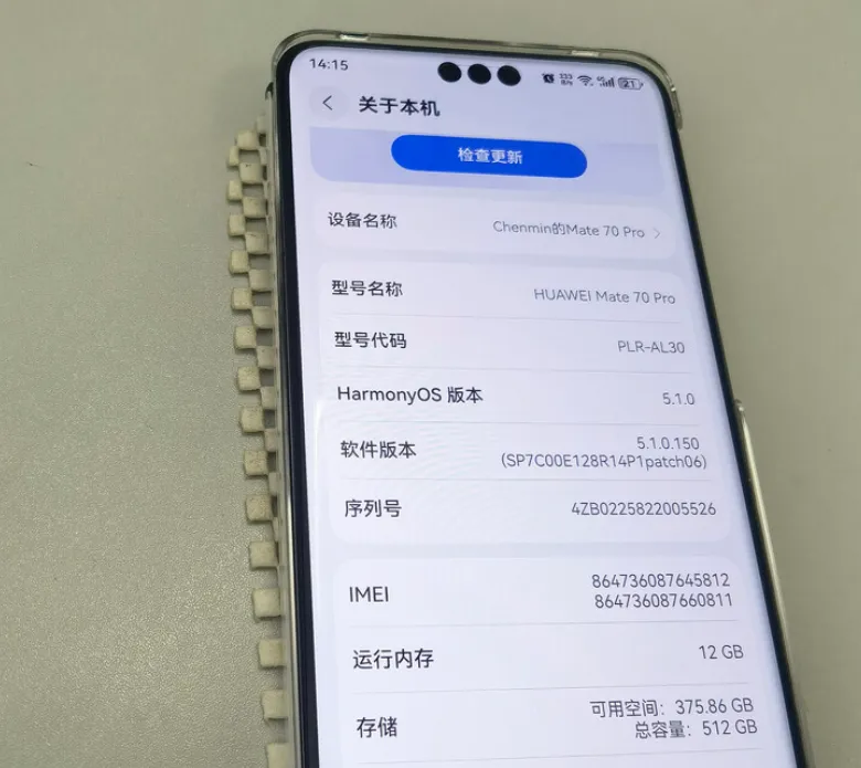 还有一款就是华为Mate 70 Pro,处理器是华为自研的麒麟9020,12核心架构,跟现在最新的mate80同款,依旧是很够用的,偶尔打游戏也很流畅。系统能升级到鸿蒙5.0纯血版本,是首批支持鸿蒙NEXT先锋版的型号,流畅度提升很大。