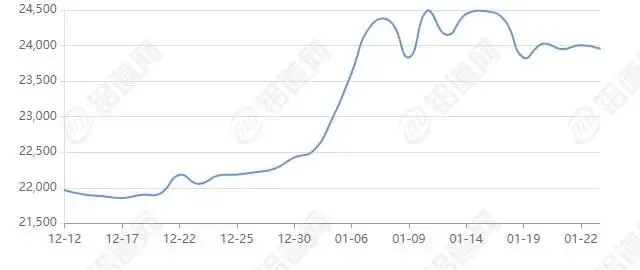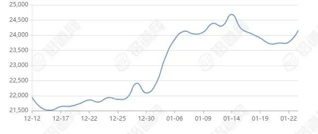 2026年01月23日上海期货行情价23955涨跌+15,最低23770,最高24150,前三日均价23993,前五日均价24034。