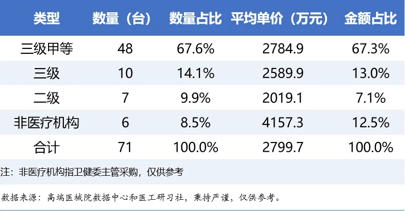 统计口径:按公开披露的中标数据进行统计;不包含未披露项目、院内交易等,可能存在品牌、型号、价格等部分字段不完整的情况,未进行价格补全;未包含维修维保、配件等非新设备采购。