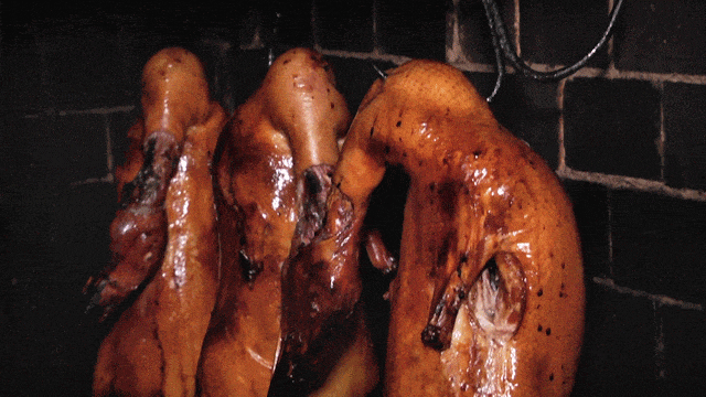 燕云楼自1928年就在上海首创经营北京烤鸭,现在店里的非遗烤鸭仍是明炉现烤现点现片。
