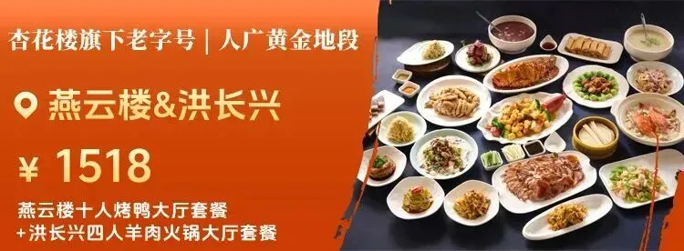 燕云楼原价2600元的10人新春套餐立减1000+,人均100出头吃招牌烤鸭、波龙、石斑、梭子蟹等19道硬菜!1月底之前预约还有惊喜哦!