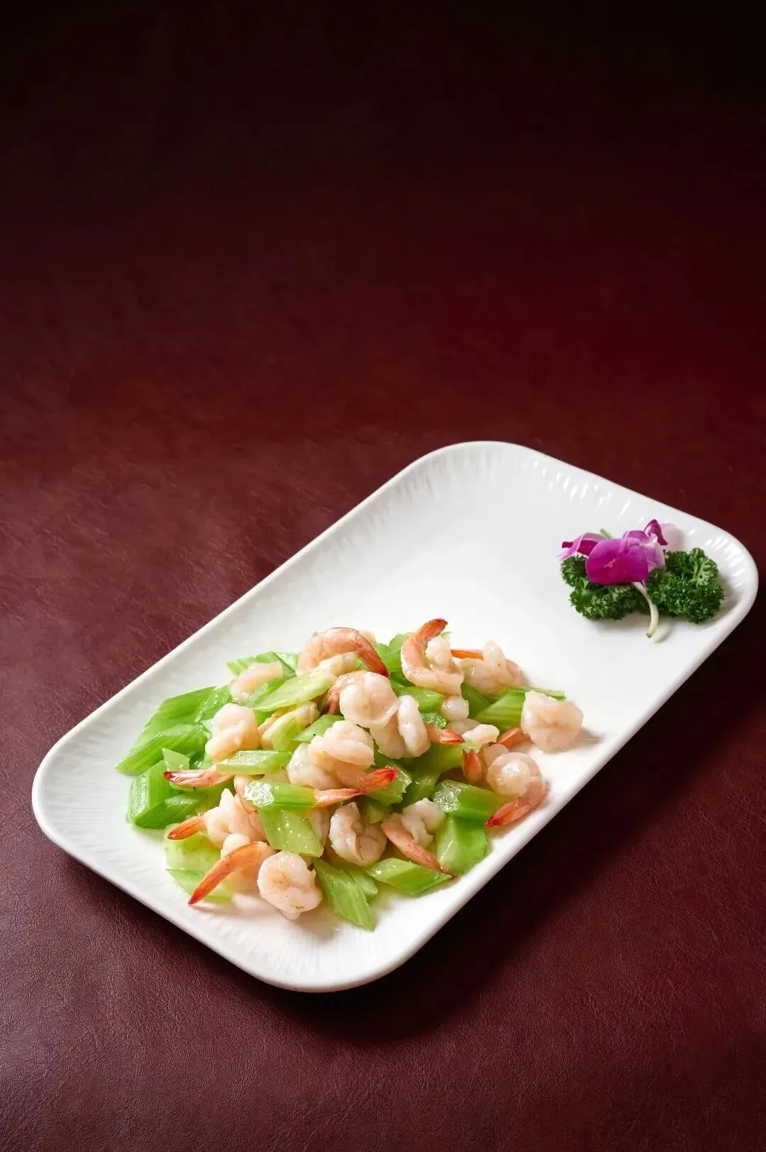 开了背的虾仁受热后卷成小肉球,新鲜得能在齿间轻轻回弹,搭配碧绿生脆的西芹段,简单清爽。