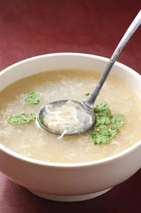 最舒坦还是喝这口汤——银鱼嫩白透亮,是太湖里游出的“面条鲜”,做成羹汤更是入口即化不带一丝腥气。