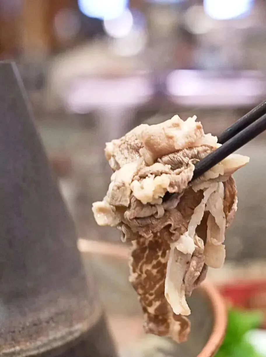 涮羊肉的核心食材是羊,它家一直坚持用牛羊肉公司供应的热气羊肉,比冷冻的更加鲜嫩有弹性。