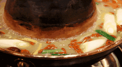 夹着红白相间的羊肉片,在汤里上下7秒左右就能捞出蘸酱下肚。如果觉得汤汤水水太多,往烟囱上轻轻一按就行。