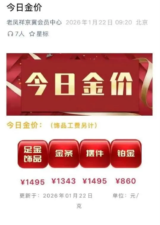 国内金饰方面,价格持续上涨,多家品牌金饰克价逼近1500元。