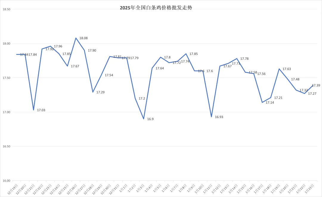 全国白条鸡平均价格:17.39元/公斤