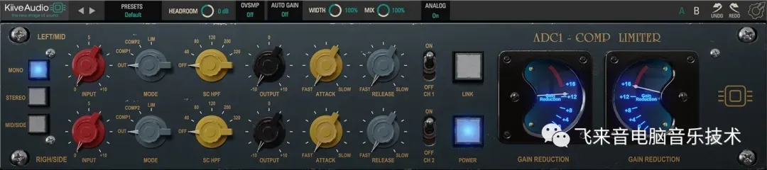 天啊!是钱德勒 TG1!Kiive Audio 这次给力放大招瞄准了这款硬件来建模插件,听了一下!简直把我听跪了!绝对正点的模拟味道,ADC1 Compressor YYDS!凭借其4种模式,ADC1 compressor 为你提供了你所要求的所有粘性压缩!宽度控制、干湿混合和过采样都包含在这款压缩机中,其灵感来自于 50 年代和 60 年代最具标志性的两台压缩/限制器。关闭模拟模式以获得平直的频率响应,非常适合在总线使用。ADC1 压缩/限制器的突击压缩是冲击鼓和人声的给力选择!