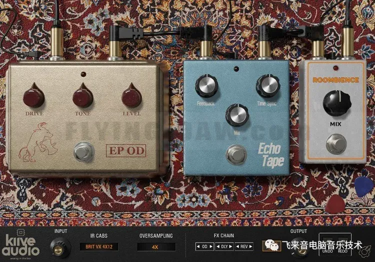 Lunchbox Amp另一面由三个效果器单块组成,一个过载器、一个磁带延迟和一个一键控制的房间混响,你也可以自己排列他们的顺序或者禁用他们。