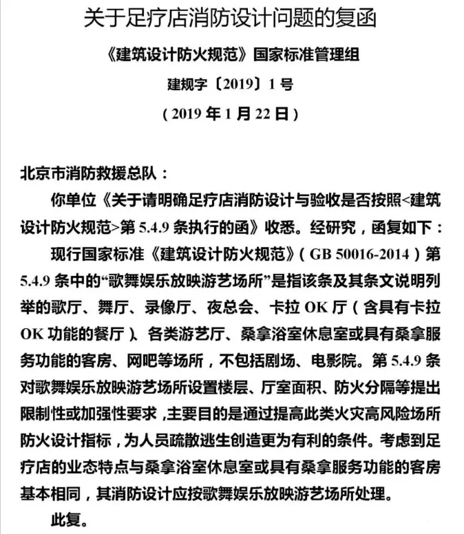 2、《江苏省密室逃脱、剧本类娱乐经营场所消防技术指引》2024年6月3、《消防救援局办公室关于转发足疗店消防设计问题复函的通知》2019年1月31日4、《建筑防火通用规范》 GB55037-2022条文解释、《重大火灾隐患判定规则》 GB35181-2025名词解释