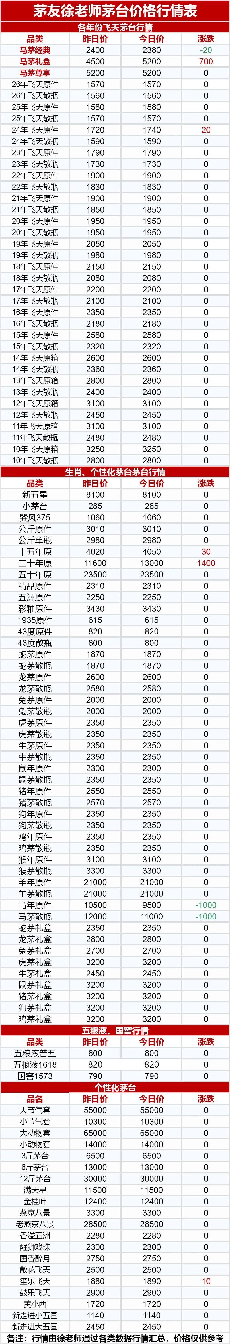 行情价:本公众号发布的价格是行情价格,是全国酒商调该品类茅台的价格,是零售价和回收价的基准价格。