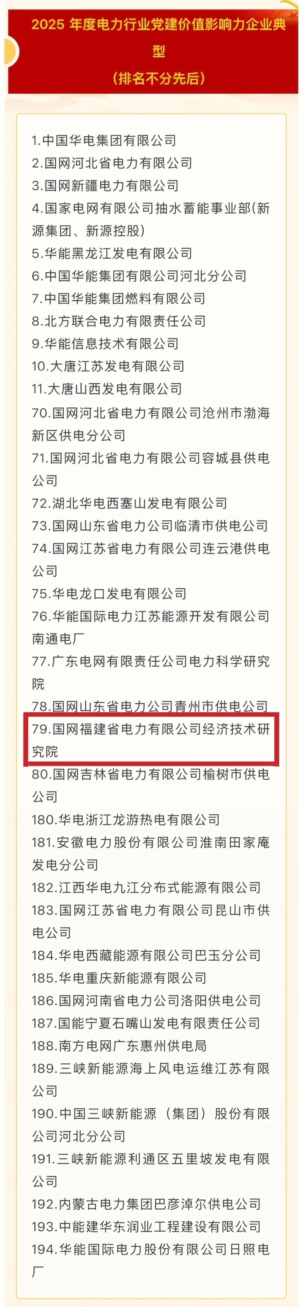 日前,从中国电力企业联合会传来喜讯,国网福建经研院从全国电力行业众多申报单位中脱颖而出,成功入选2025年度电力行业党建价值影响力企业典型。