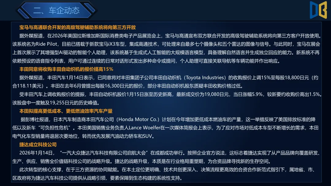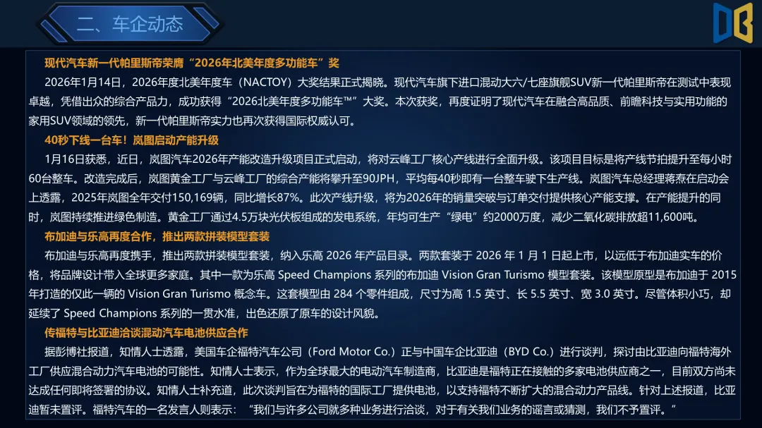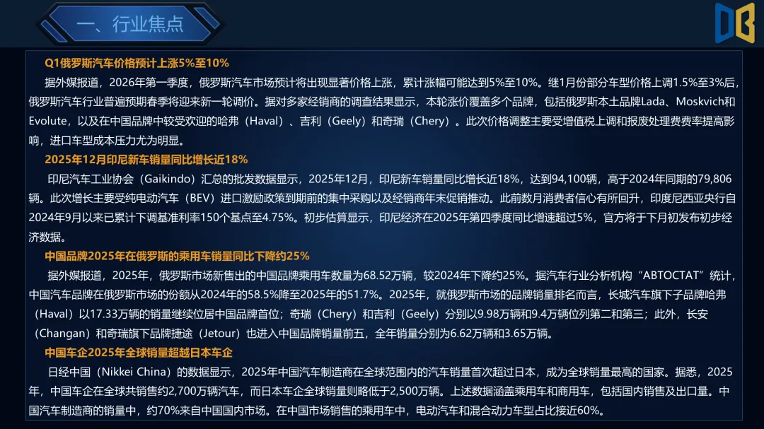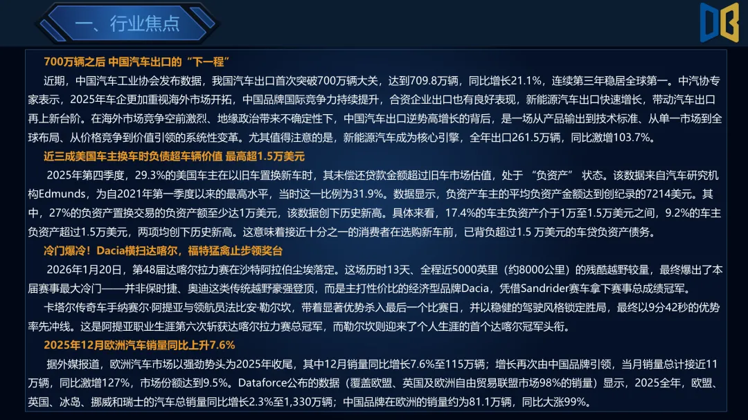 >乘用车行业2026年第4周周报