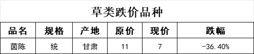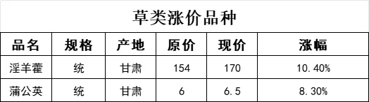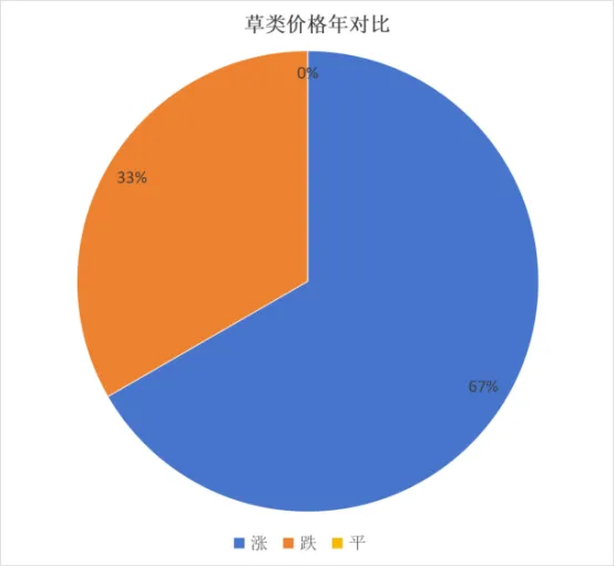 草类价格上涨的品规占67%;跌价品规占33%;无价格持平的品规。