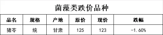 菌藻类仅有1(猪苓)个品规,价格指数属于下跌状态。