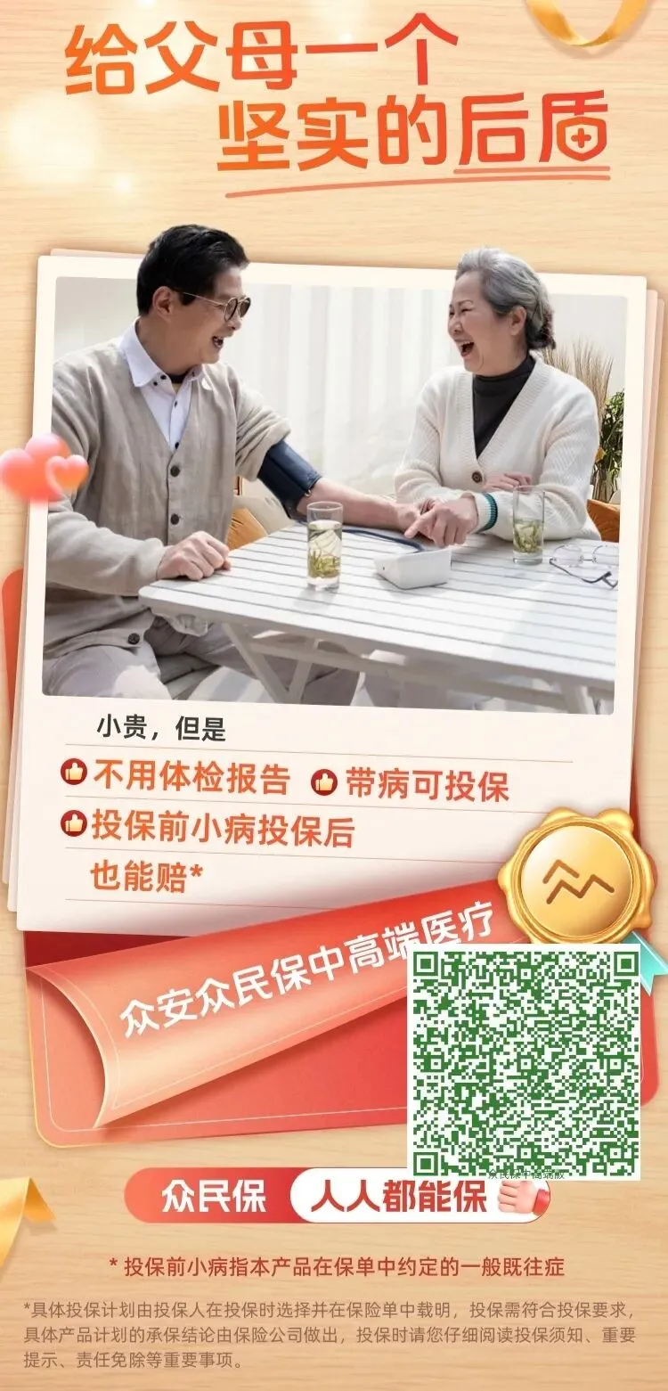 今天重重磅解读众安保险这款#众民保·中高端医疗险#,不限健康状况、人皆可投,带病也能参保,妥妥的网红爆款百万医疗!