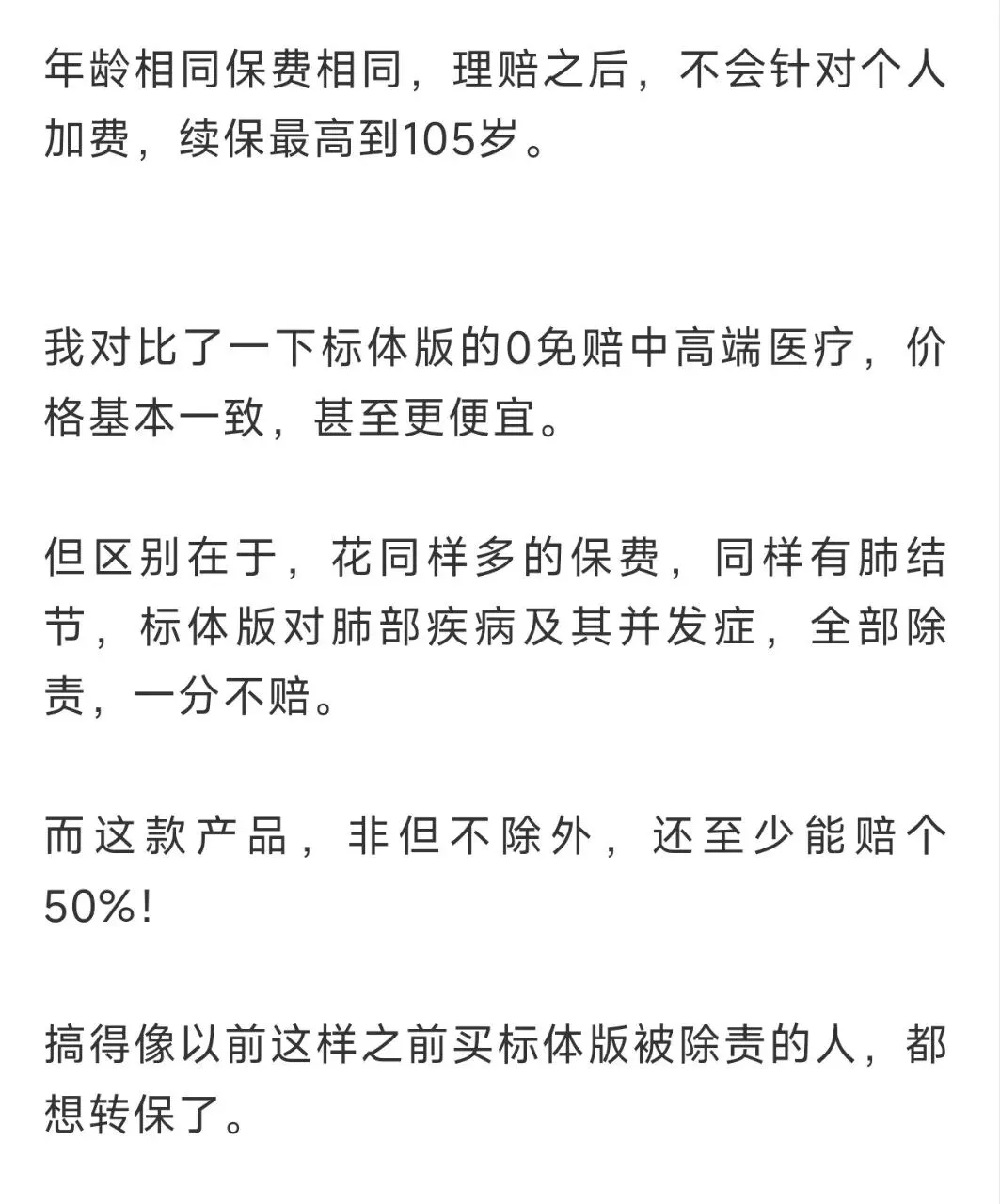 千万不要试图在医疗险上节约保费,否则,只有节约的那一时刻是开心的,以后每次报销都是糟心的。