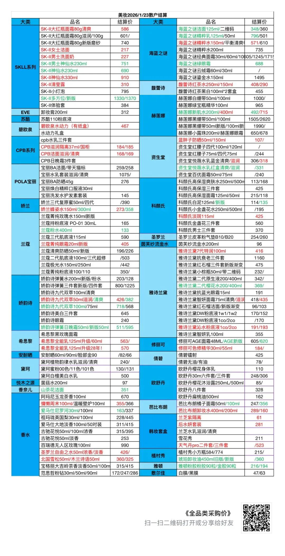 >1月23日美妆行情报价