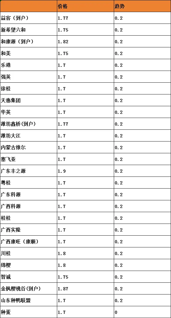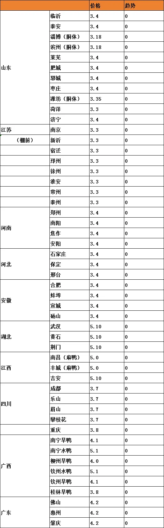 明日毛鸭(单位:元/斤)仅供参考