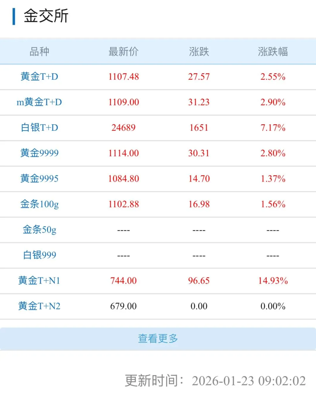 今日金价行情,今日金价查询表( 2026年01月24日)