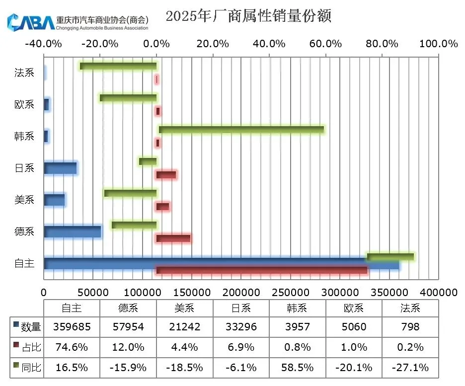 整体来看:2025年重庆汽车市场度过了一个相对平稳的阶段,无论是市场总量、销量增势还是新能源市场占有率均达到一个令人满意的程度,整体走势明显好于行业。
