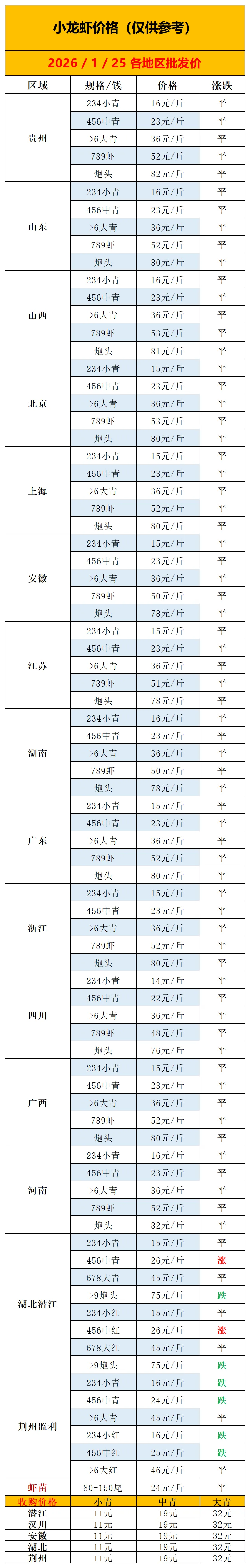 >2026 . 1 . 25 小龙虾价格