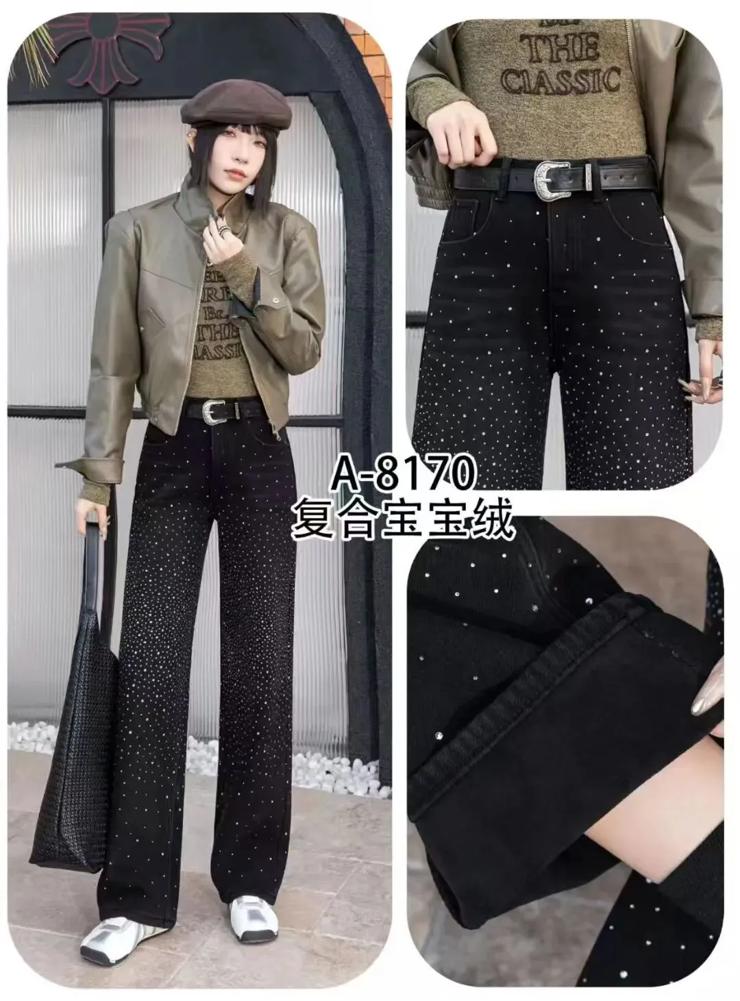 烫钻黑色 今晚特价啦 这个裤型要窄点哦