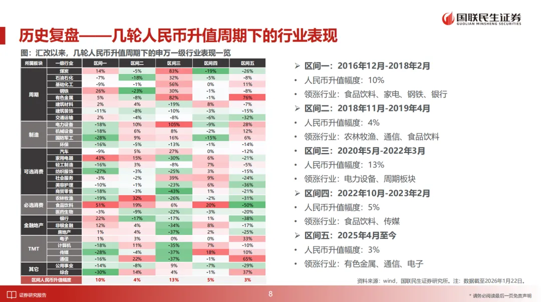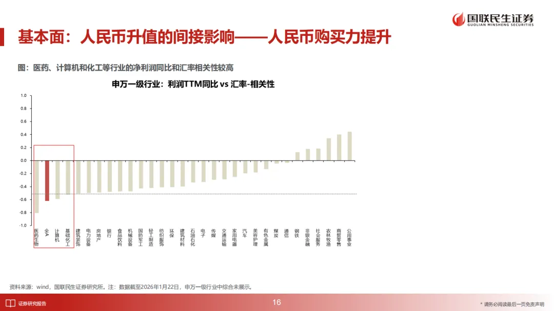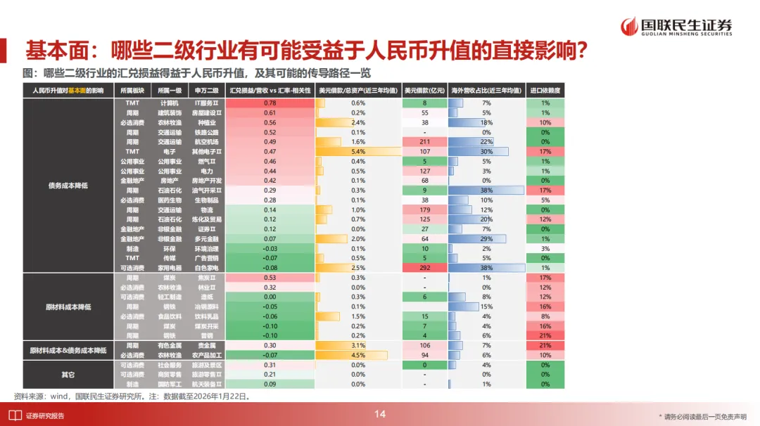 如何寻找人民币升值下的行业机会?——基本面视角。