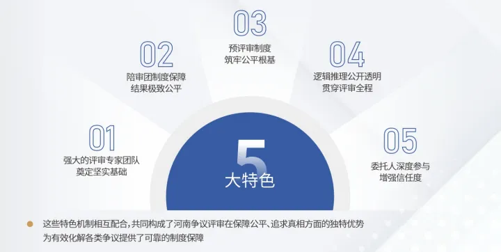 中心以争议评审为核心机制,组建涵盖工程、造价、法律领域的本土专家库,着力构建符合河南行业实际的专业解纷体系。我们创新融入五大核心优势: