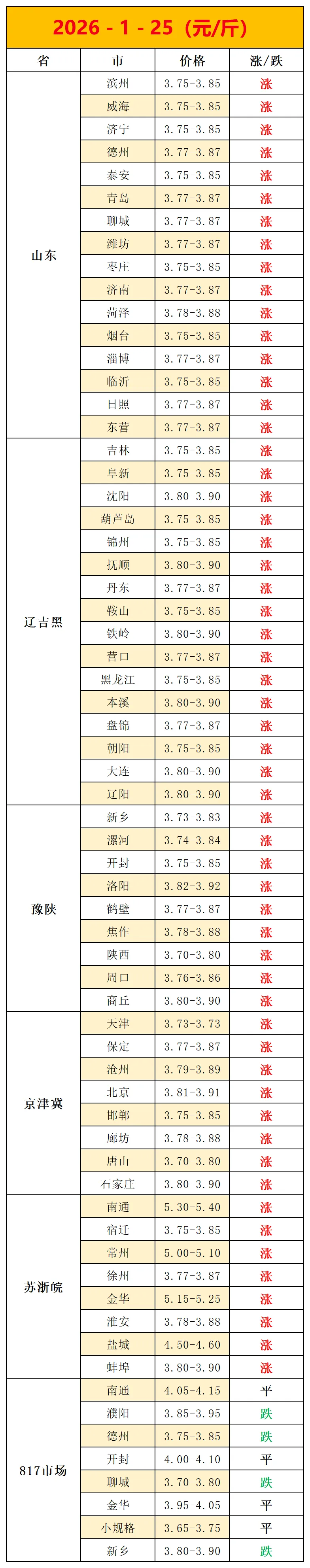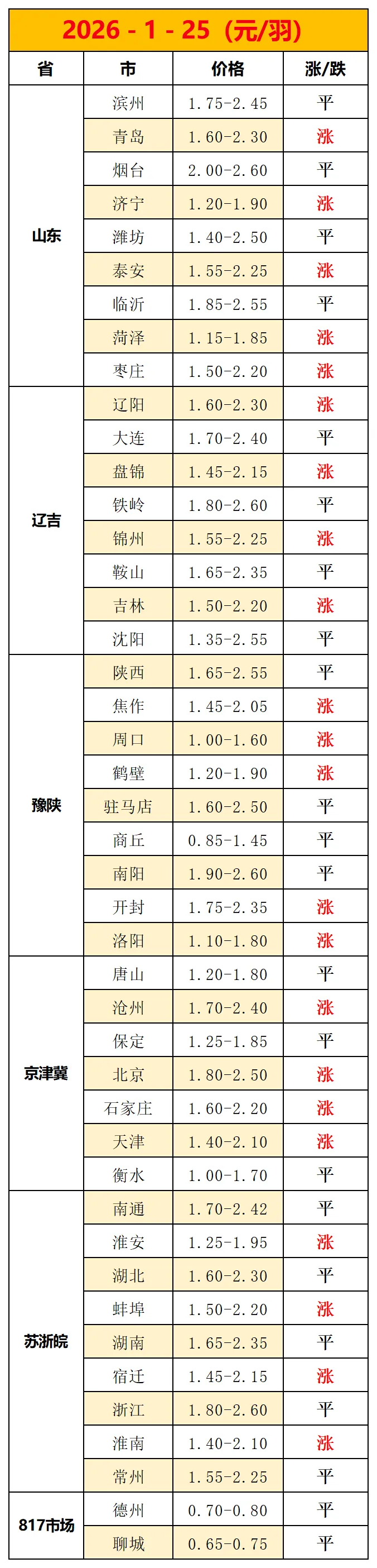 2026 . 1 . 25 肉鸡、鸡苗价格早知道