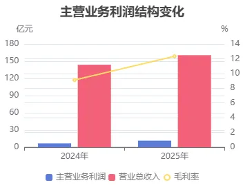 2025年三季度主营业务利润为11.33亿元,去年同期为6.70亿元,同比大幅增长69.15%。