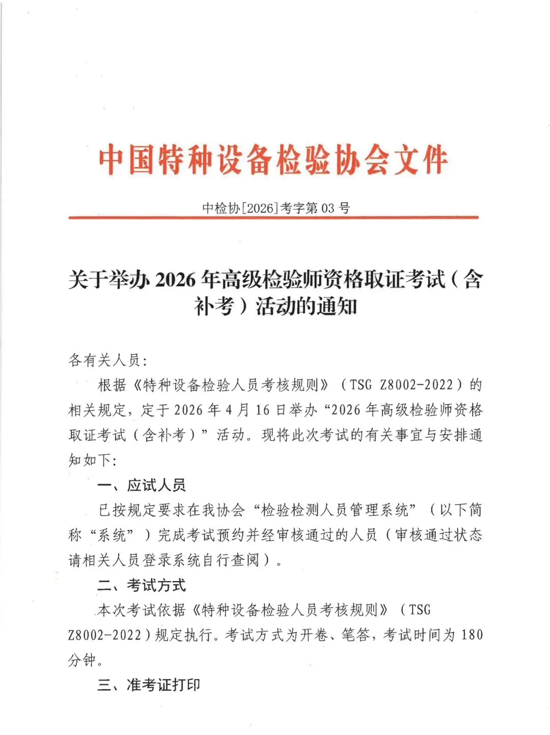 >特检行业年入百万的考试来啦!中特协:关于举办2026年高级检验师资格取证考试(含补考)活动的通知