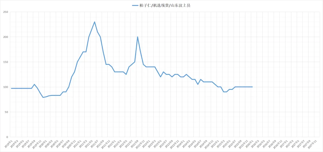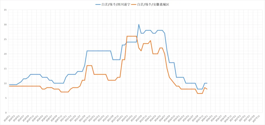当地产新已经结束,今年整体货源产出量不及去年,近期少商前来寻货,货源走动迟缓,现统货售价在8-8.5元。